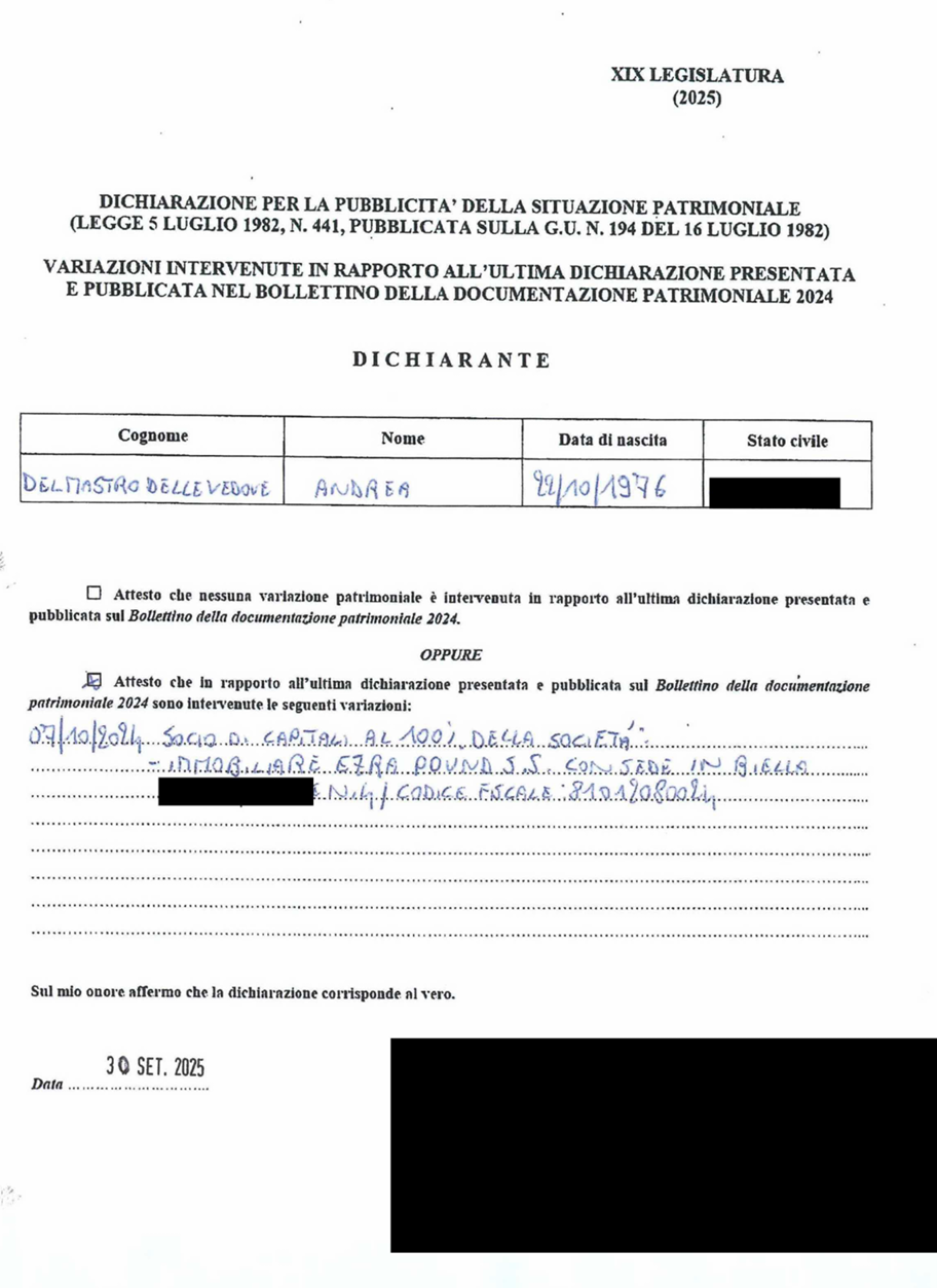 C'è poi un altro elemento che colpisce l'opinione pubblica, più di ogni affermazione di circostanza: nelle sue dichiarazioni patrimoniali – quelle che i parlamentari depositano per trasparenza – l'onorevole Delmastro non avrebbe mai citato quella partecipazione. Vero? Non pienamente corrispondente al vero? Decisamente falso? Una dimenticanza? Un'omissione? Lo spiegherà il diretto interessato. Però... In un uomo dello Stato, in un uomo che ha fatto della lotta alla mafia un vessillo personale ("La mafia è una montagna di m...a", ha ridetto oggi, giovedì 19 marzo), la sua "dimenticanza" appare quanto meno sorprendente.